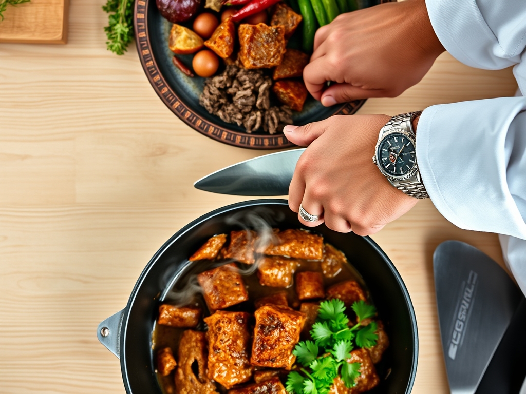 Efficiency in the kitchen is about "Chef's Flow." Expect a total prep time of 30 minutes for meticulous dicing and a cook time of approximately two to two and a half hours. The first 15 minutes are high-intensity, involving the searing of the meat and the blooming of the spices. The remaining time is passive; a slow, low-temperature simmer where the heavy lifting happens at a molecular level.