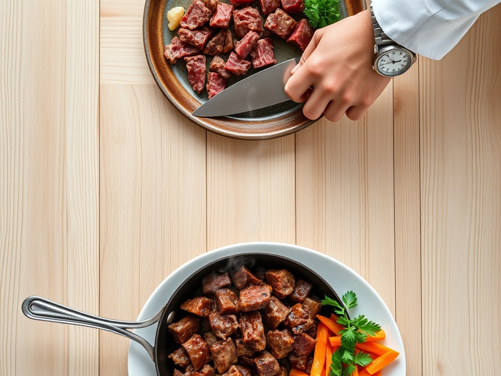 Place your heavy-bottomed skillet over medium-high heat until a drop of water dances and evaporates instantly. Add the beef in a single, flat layer. Do not crowd the pan, as this causes the meat to steam in its own juices rather than brown.